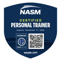 I am a certified personal trainer with the National Academy of Sports Medicine (NASM), and an NASM Certified Nutrition Coach and Senior Fitness Specialist.